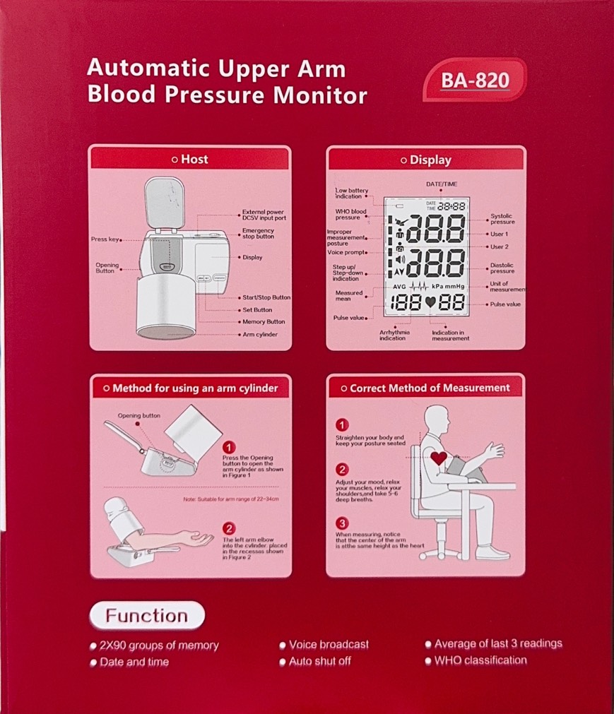 - มีโหมดหยุดฉุกเฉินด้วยปุ่มเดียว (หากรู้สึกแน่นแขนหรือเวียนศีรษะระหว่างการใช้งาน สามารถหยุดเครื่องได้ทันที โดยไม่ต้องรอจบกระบวนการ)