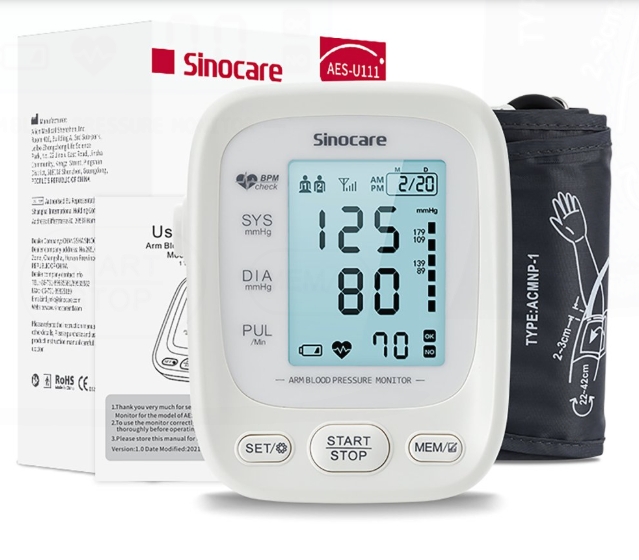 เครื่องวัดความดันโลหิต วัดต้นแขน Sinocare รุ่น AES-U111