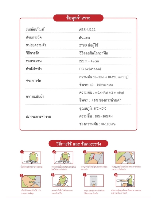 เครื่องวัดความดัน AES-U111 ใช้งานง่าย ความยาวปลอกแขน 24-42 cm