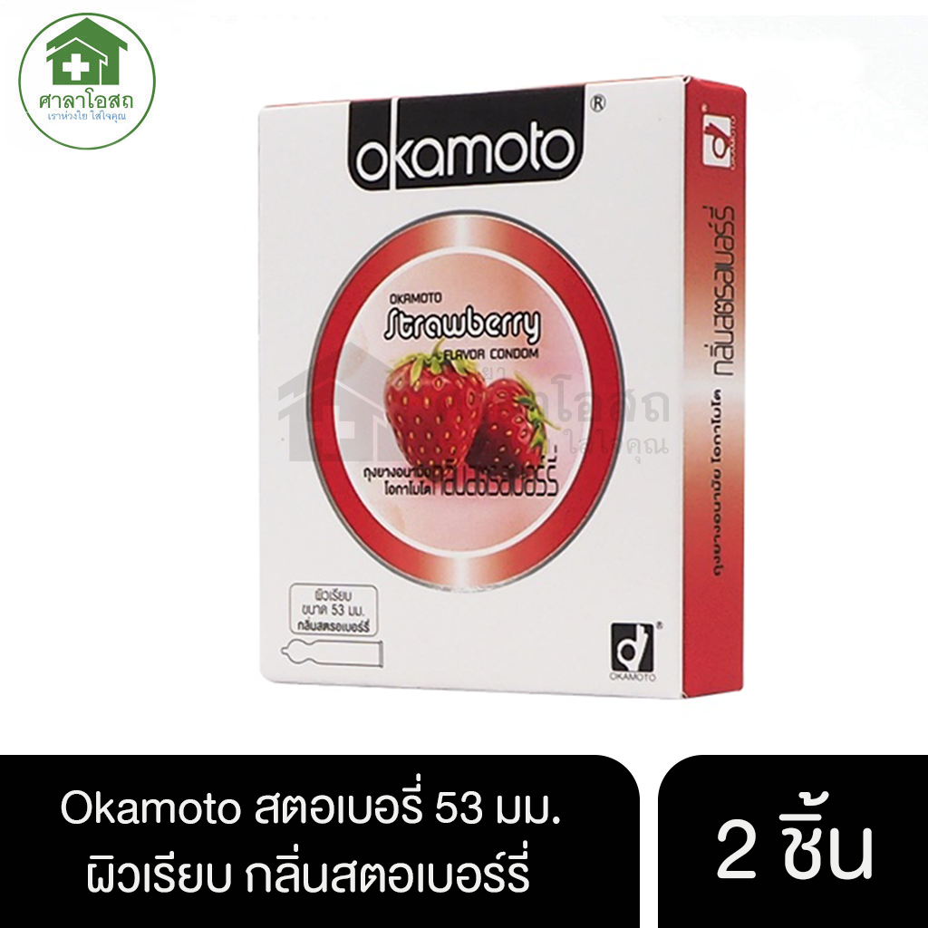 8.ถุงยางอนามัย okamoto กลิ่น Strawberry " โอกาโมโต กลิ่นสตรอเบอร์รี่ "ขนาด 53 มม. ลักษณะเด่น: กลิ่นสตรอเบอร์รี่หอมหวาน กระชับสรีระท่านชายพอดี ผิวสัมผัส: ผิวเรียบ แบบบาง สารหล่อลื่น: มีสารหล่อลื่น ขนาดรองรับ: 53 มม. ความหนา: 0.06 มม. ส่วนปลาย: ปลายกระเปาะ สี: ชมพู กลิ่น/รส: สตรอเบอร์รี่ จำนวนบรรจุ: 2 ชิ้น/กล่อง ใบอนุญาตเครื่องมือแพทย์เลขที่: อย. ผ.162/2548