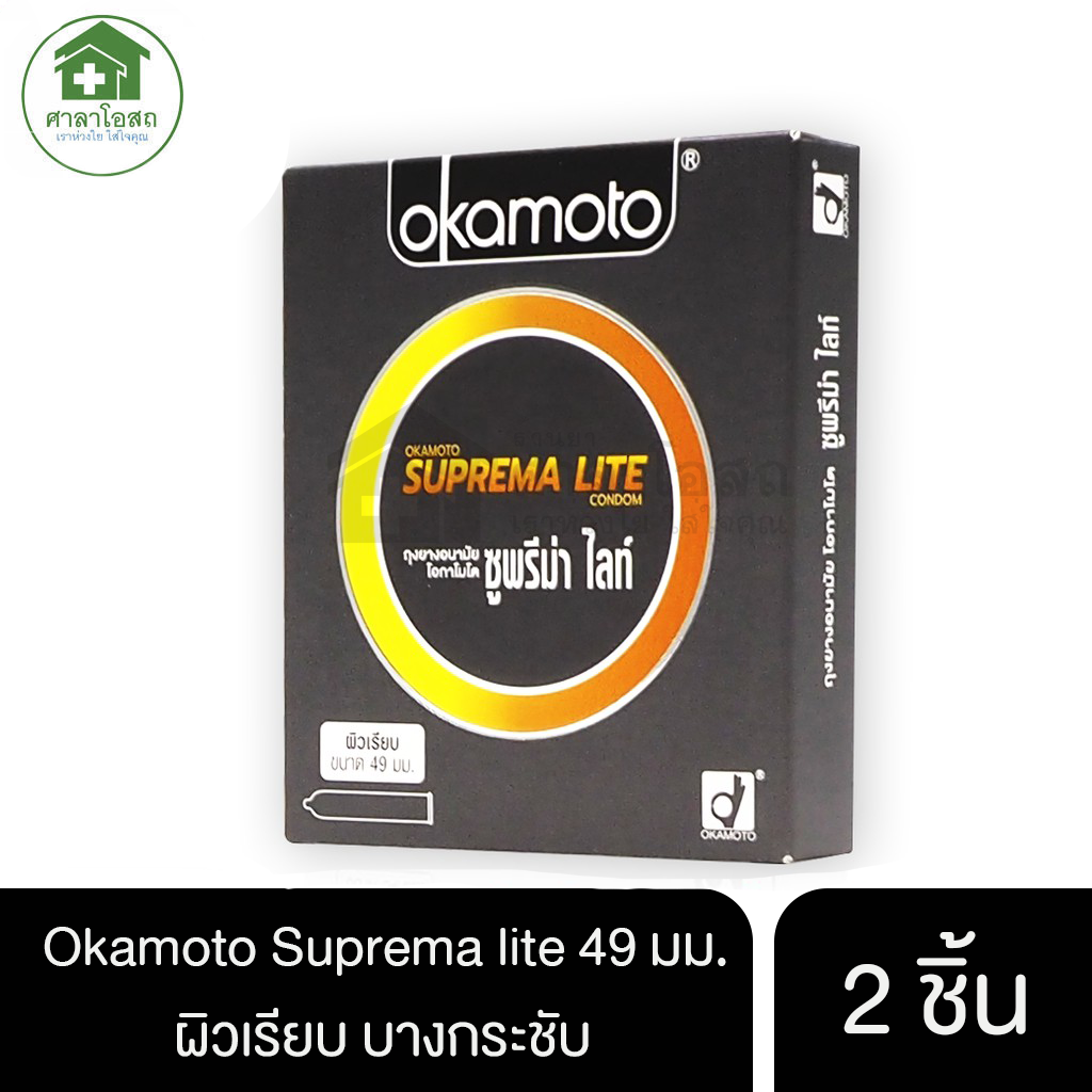 6.ถุงยางอนามัย okamoto Suprema Lite " โอกาโมโต ซูพรีม่า ไลท์ " ขนาด 49 มม. ลักษณะเด่น: บาง ฟิตกระชับ ช่วยให้แข็งตัวได้ดีขึ้น ผิวสัมผัส: ผิวเรียบ แบบบาง สารหล่อลื่น: มีสารหล่อลื่น ขนาดรองรับ: 49 มม. ความหนา: 0.06 มม. ส่วนปลาย: ปลายกระเปาะ สี: ธรรมชาติ กลิ่น/รส: ธรรมชาติ จำนวนบรรจุ: 2 ชิ้น/กล่อง ใบอนุญาตเครื่องมือแพทย์เลขที่ : อย. ผ.8/2554