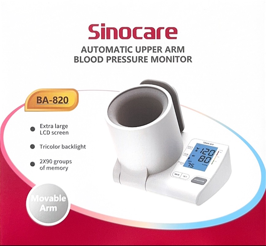 Sinocare เครื่องวัดความดันโลหิตดิจิตอล (แบบสอดแขน) รุ่น BA-820 ใช้งานง่ายด้วยปุ่มเดียว หน้าจอใหญ่ - รับประกันศูนย์ไทย 1 ปี