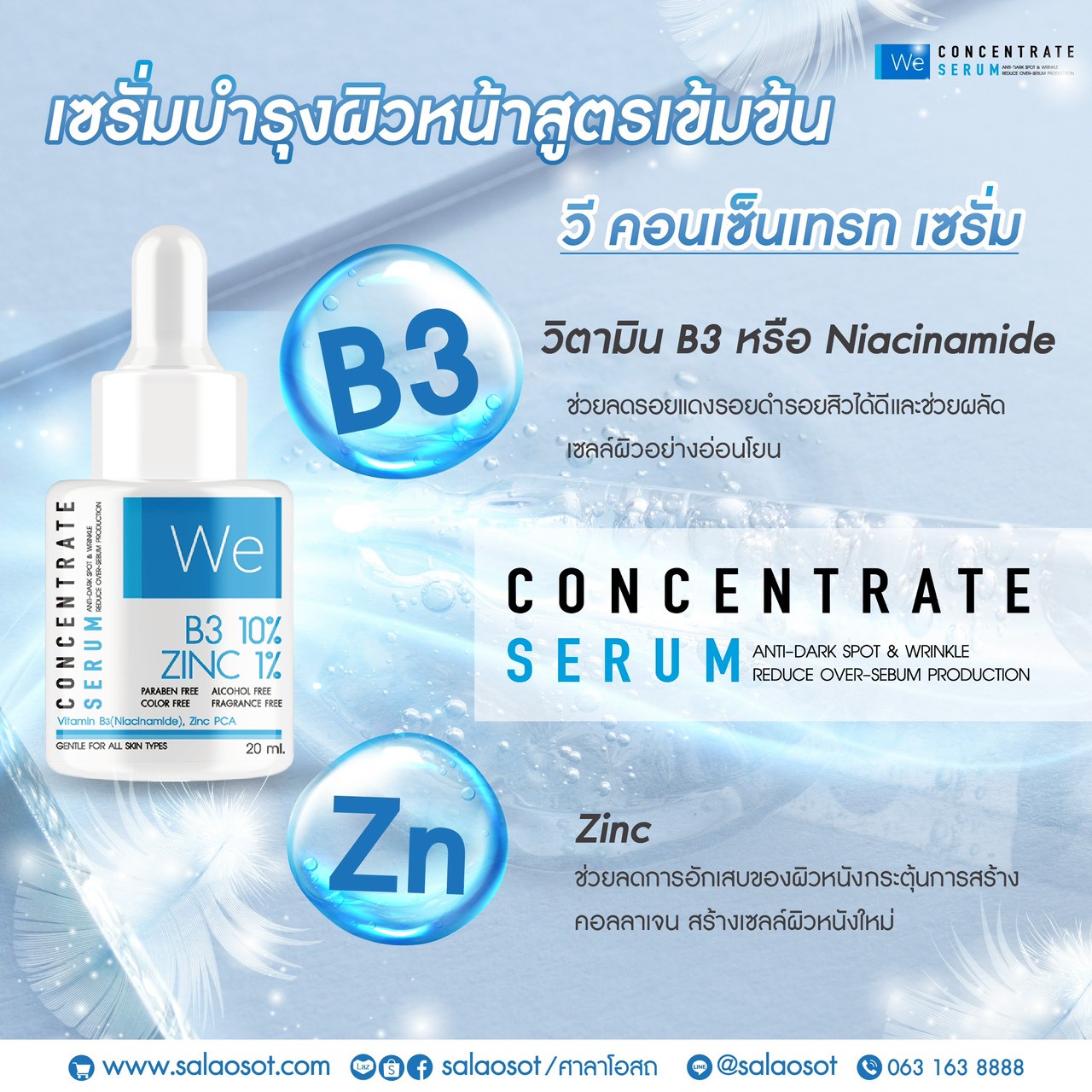 เซรั่มลดรอยบำรุงผิวหน้าสูตรเข้มข้น ประกอบด้วยสารสำคัญหลัก 2 ชนิด และสารเสริมที่มีประโยชน์อีกมากมาย