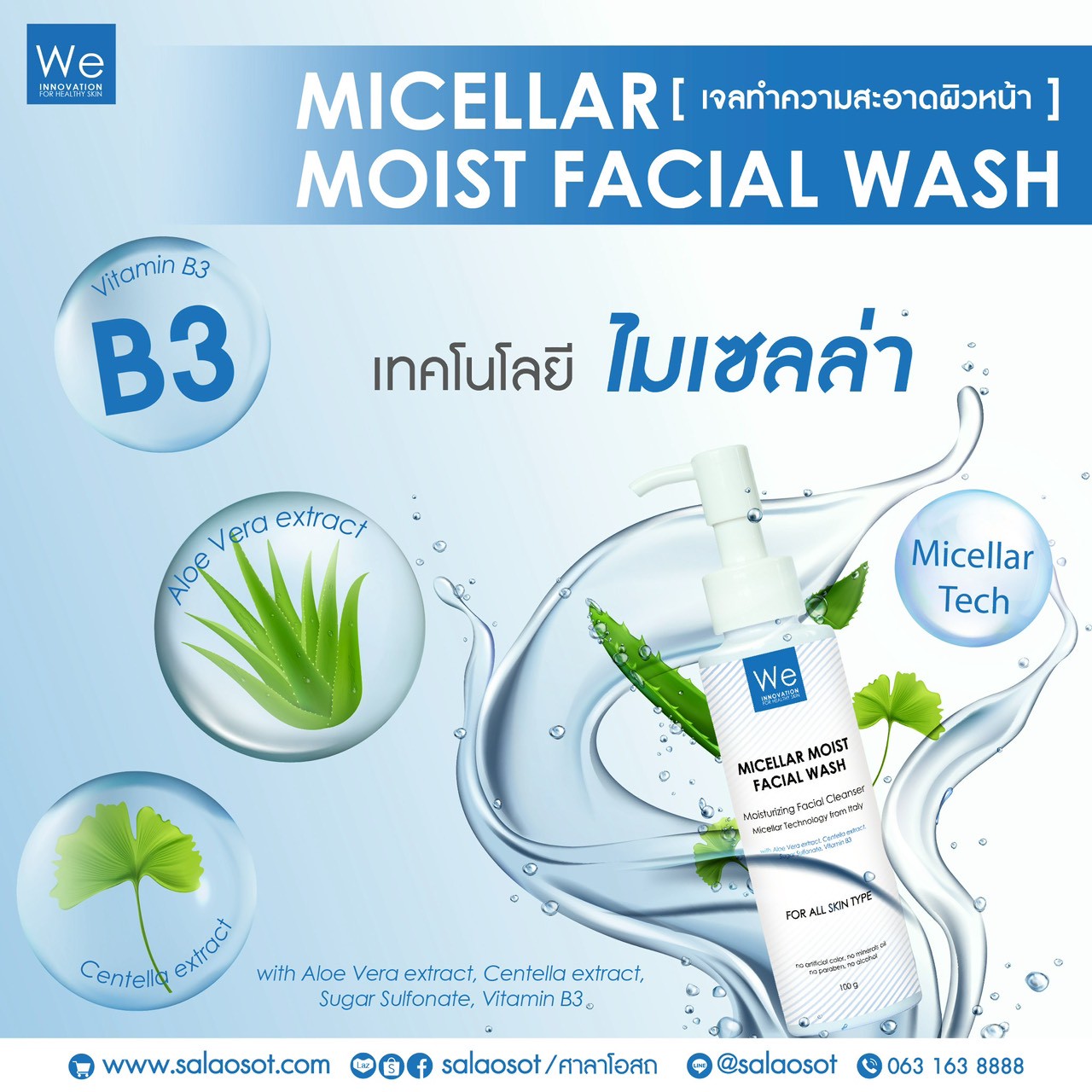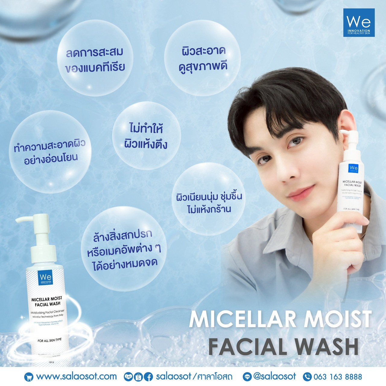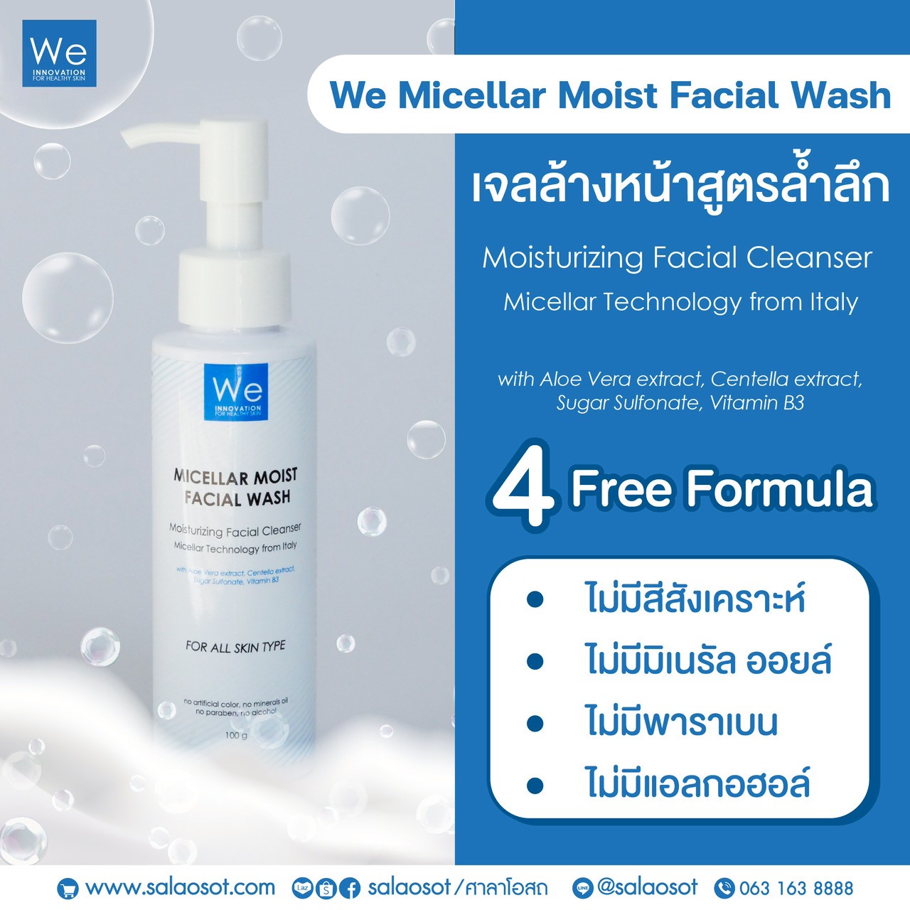 ที่อาจทำให้แพ้หรืออุดตัน นอกจากนี้เจลล้างหน้า we facial wash มีส่วนช่วยในการบำรุงผิวหน้า จึงทั้งทำความสะอาดและฟื้นฟูในขวดเดียว